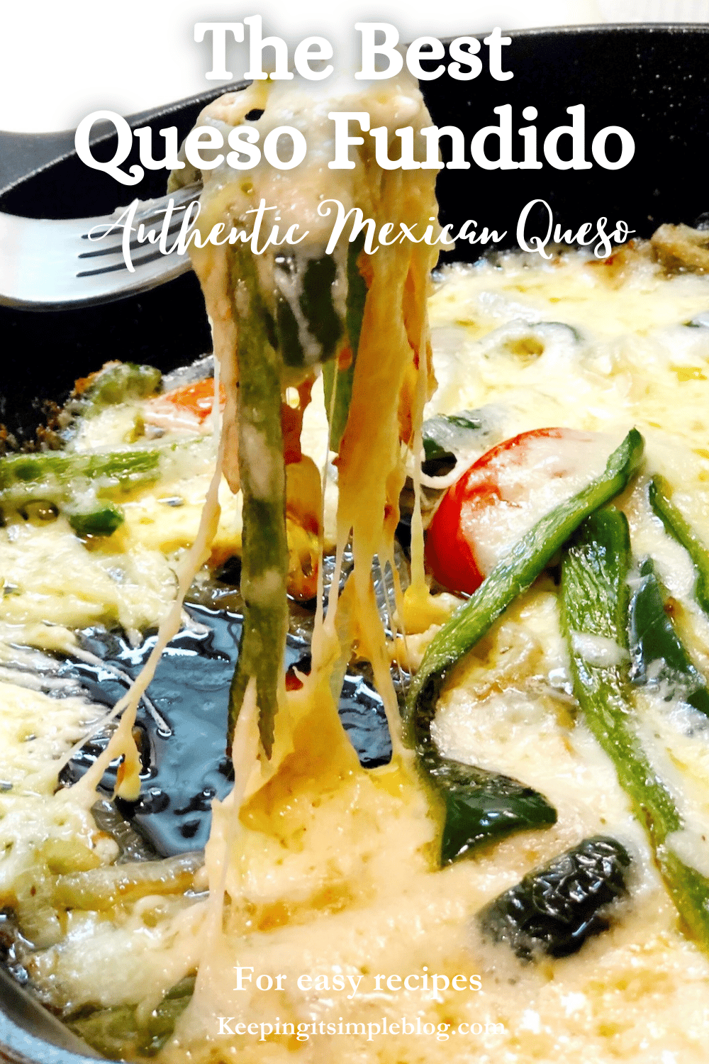 Queso fundido is a delicious Mexican queso recipe, that is loaded with gooey melted Mexican cheese that sits on top of roasted poblanos and onions. It is so full of flavor and it is so easy to make.